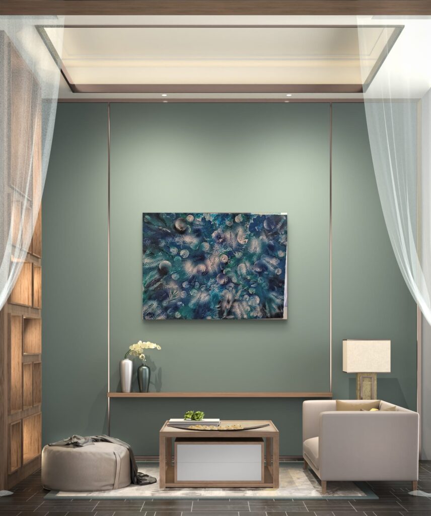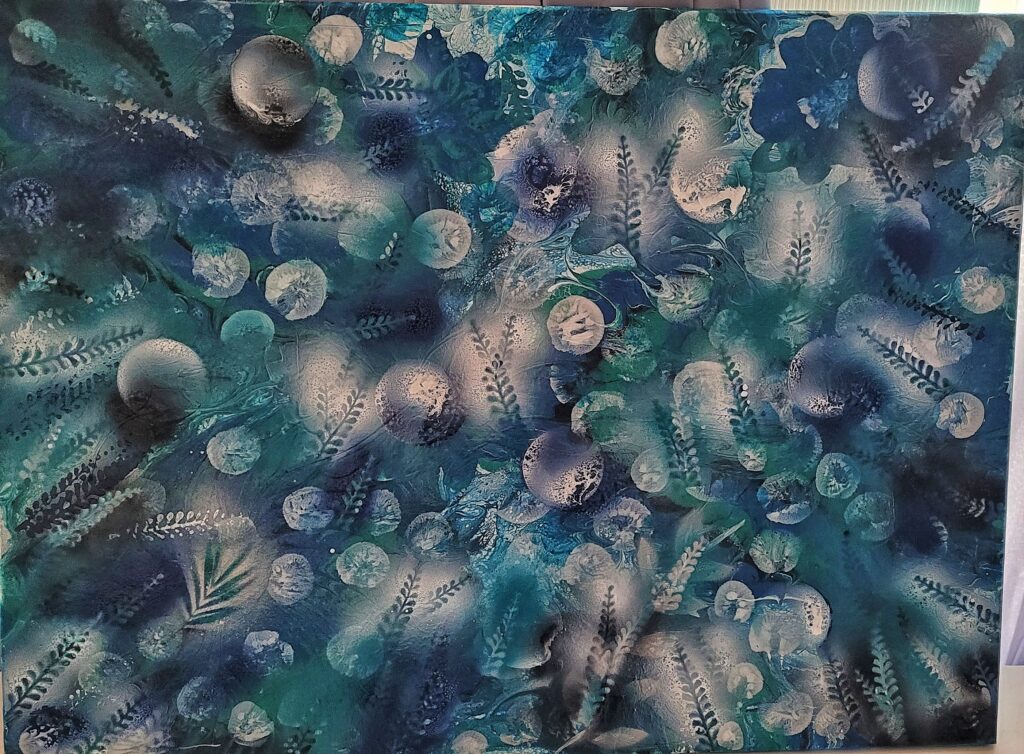 Abstrakcja #SztukaWspółczesna #PodwodnyŚwiat #Kolory #Tekstura #Niebieski #Zielony #OrganiczneKształty #Eteryczność #RoślinneMotywy