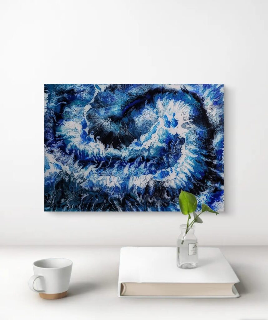 abstrakcyjny obraz fal, wzburzone fale, dekoracja ścian, sztuka współczesna, nowoczesne wnętrza, obraz do salonu, siła i dynamika, sztuka do gabinetu, inspiracja artystyczna, polska literatura